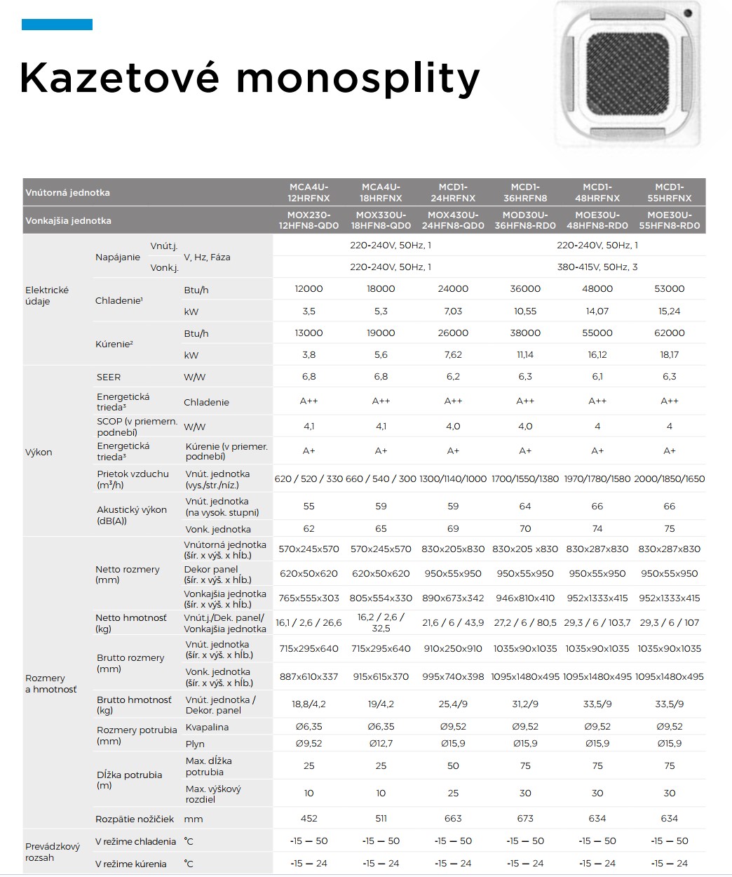 Kazetový split MCA4-12HRFNX (R32, 3,5 kW, s breezeless funkciou)