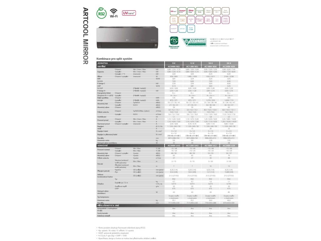 LG ARTCOOL AC18BK VÝKON CH/V 5,0/5,8 KW