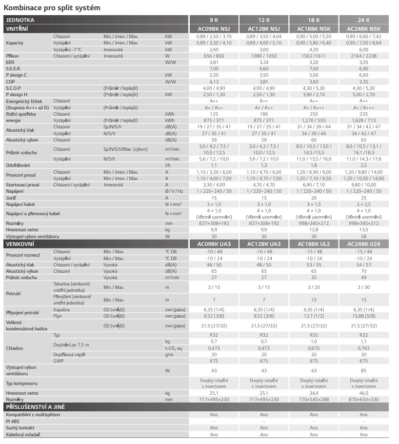 LG ARTCOOL AC24BK VÝKON CH/V 6,6/7,5 KW