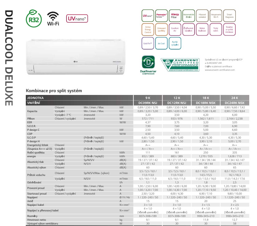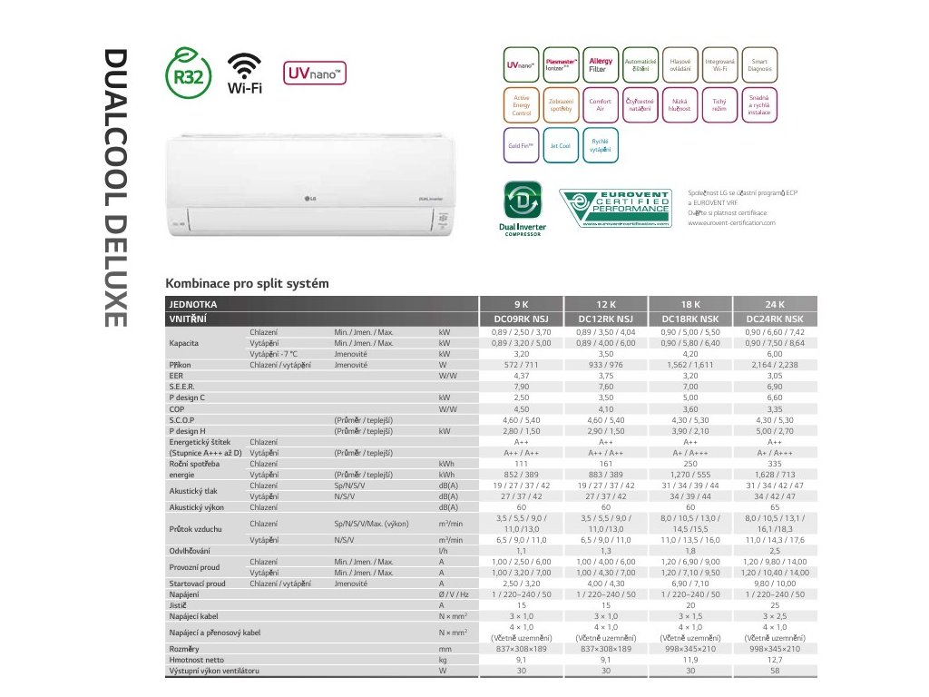 LG DELUXE MULTISPLIT DC18RK.NSK VÝKON CH/V 5,5/5,8 KW