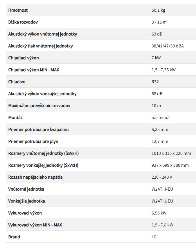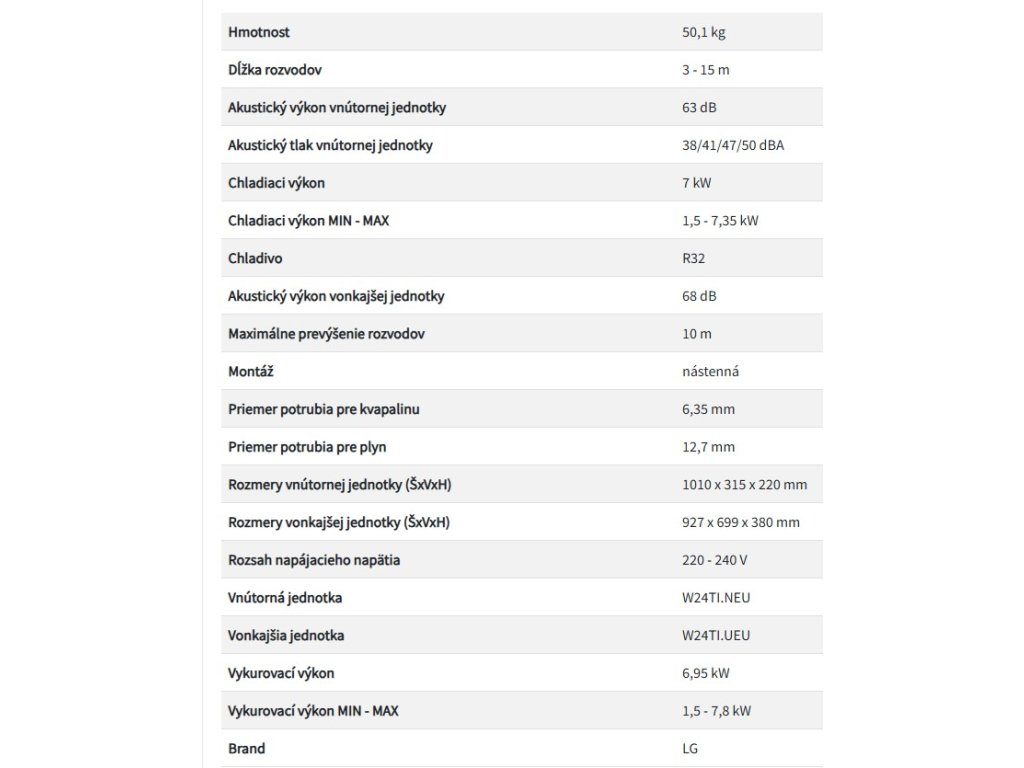 LG DUALCOOL PRO W24TI VÝKON CH/V 7,0/7,0 KW