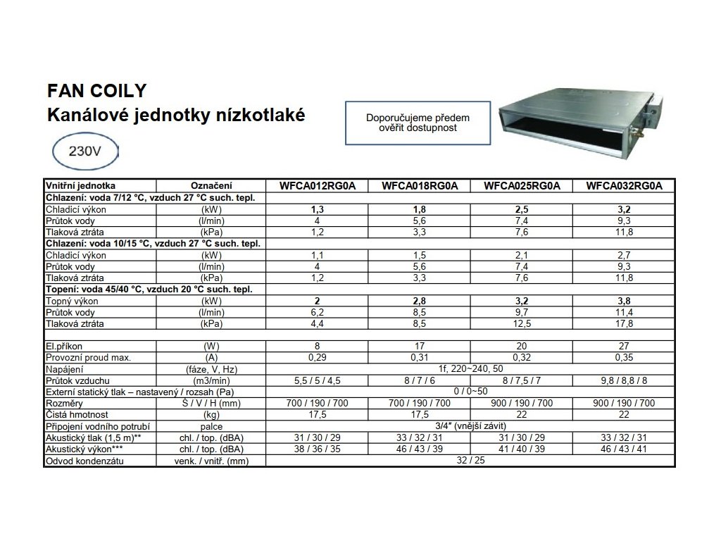 LG FANCOIL kanálová nízkotlaká jednotka WFCA018RG0A ch/v 1,8/2,8 kW