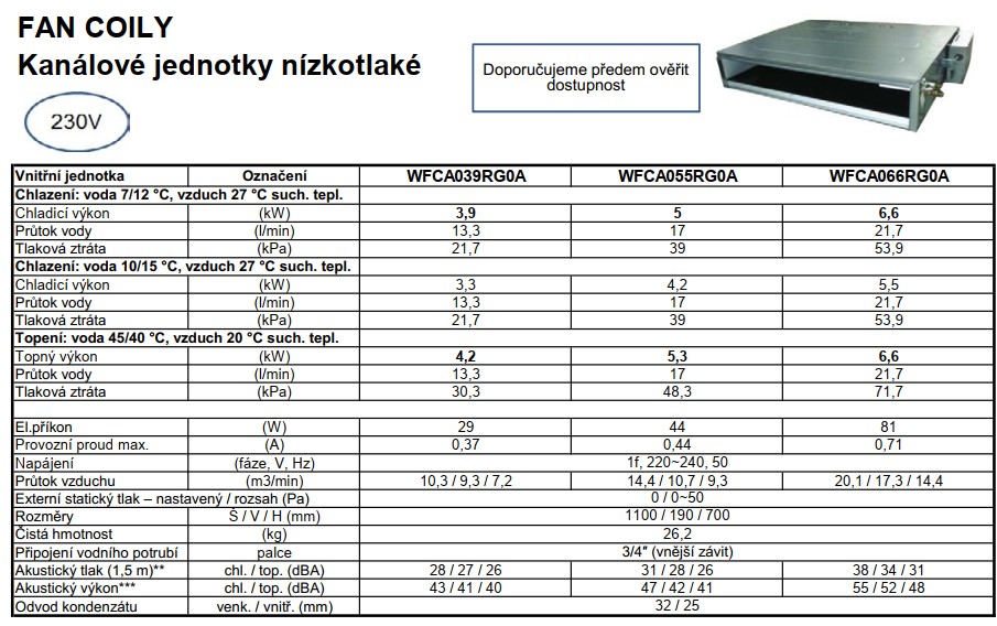 LG FANCOIL kanálová nízkotlaká jednotka WFCA055RG0A ch/v 5,0/5,3 kW