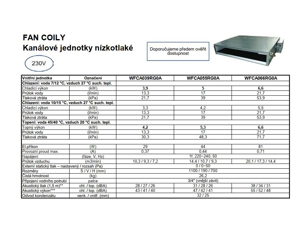 LG FANCOIL kanálová nízkotlaká jednotka WFCA066RG0A ch/v 6,6/6,6 kW