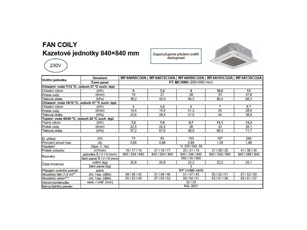 LG FANCOIL kazetová jednotka 4cst WF4A060CG0B ch/v 6,0/7,2 kW