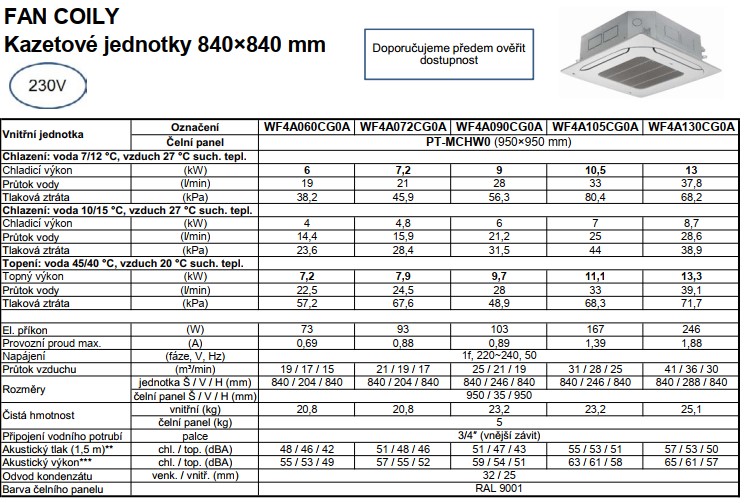 LG FANCOIL kazetová jednotka 4cst WF4A090CG0B ch/v 9,0/9,7 kW