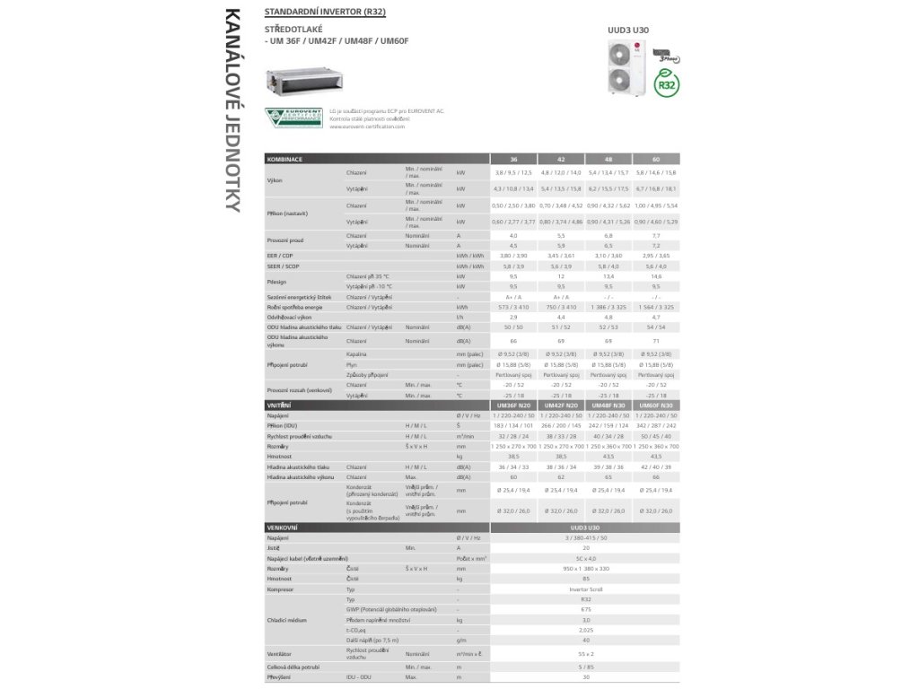LG KANÁLOVÁ JEDNOTKA STREDNOTLAKÁ UM36F VÝKON CH/V 9,5/10,8 KW 3F