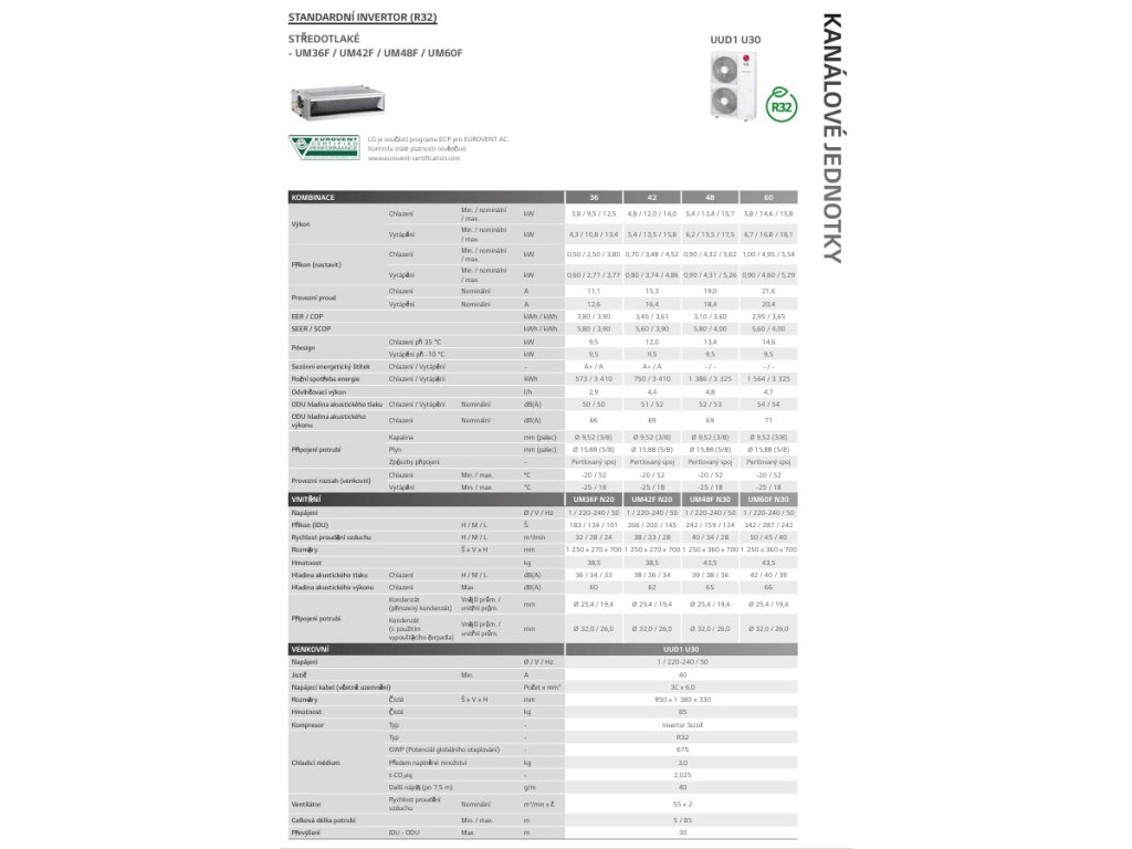 LG KANÁLOVÁ JEDNOTKA STREDNOTLAKÁ UM42F VÝKON CH/V 12,8/13,5 KW 1F
