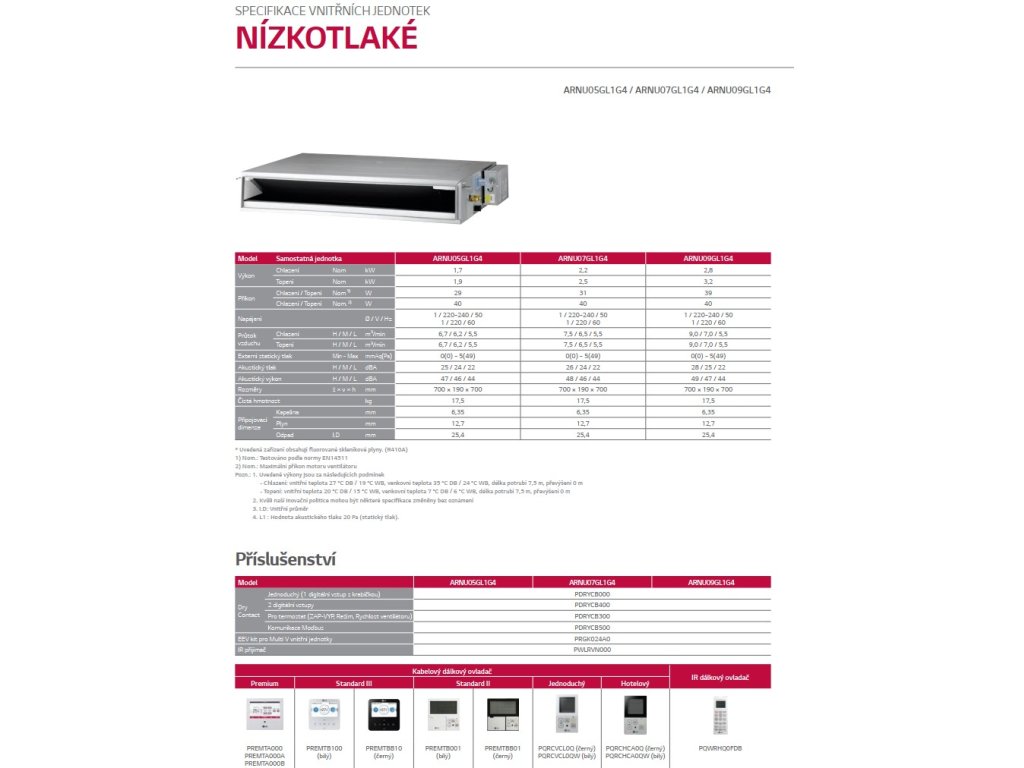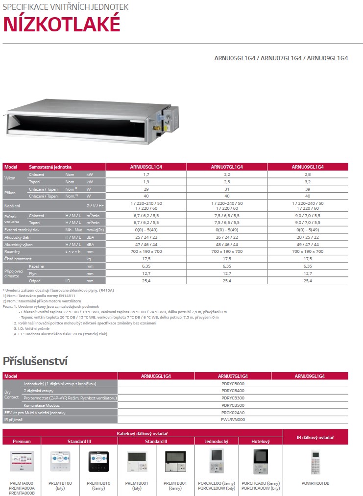 LG KANÁLOVÁ NÍZKOTLAKÁ SLIM MULTI V- vnútorná jednotka ARNU05GL4G4 VÝKON CH/V 1,6/1,8 kW