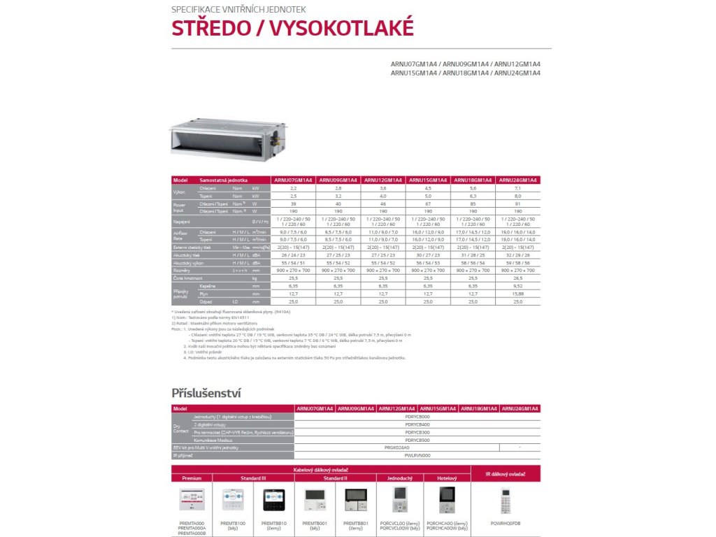 LG KANÁLOVÁ STREDNOTLAKÁ/VYSOKOTLAKÁ MULTI V - vnútorná jednotka ARNU12GM1A4 VÝKON CH/V 3,6/4,0 kW