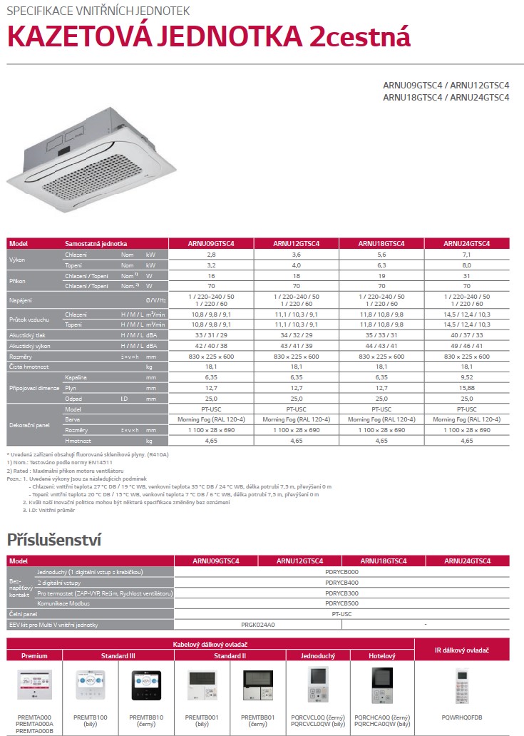 LG KAZETOVÁ MULTI V 2CST- vnútorná jednotka ARNU09GTSC4 VÝKON CH/V 2,8/3,2 kW