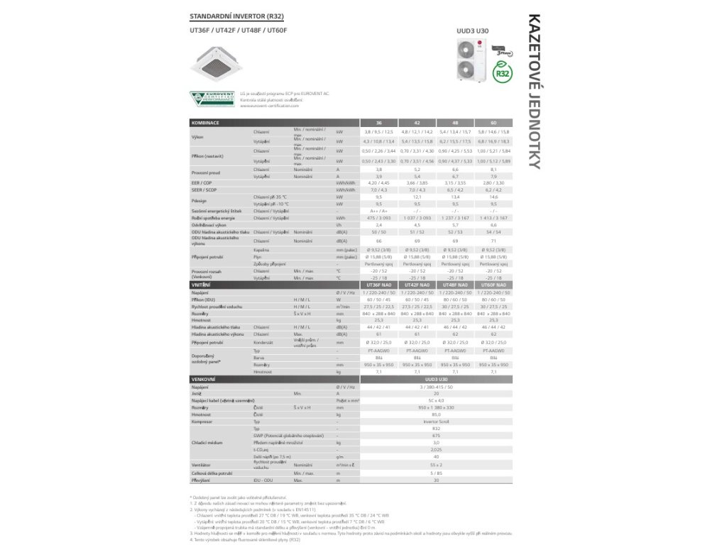 LG KAZETOVÁ UT48F VÝKON CH/V 13,4/15,5 KW 3F