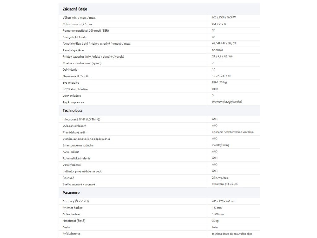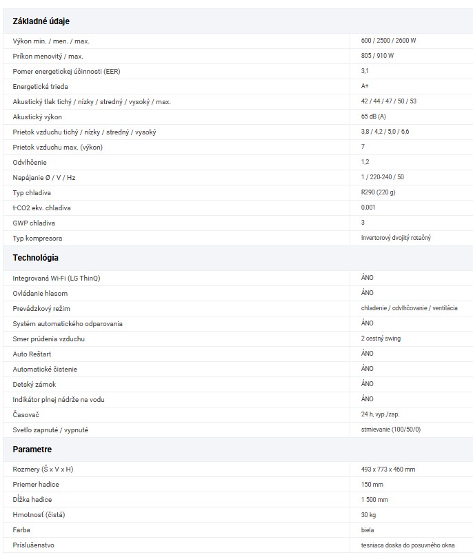 LG MOBILNÁ KLÍMA PA11WS VÝKON Ch/V 2,5/2,5 KW
