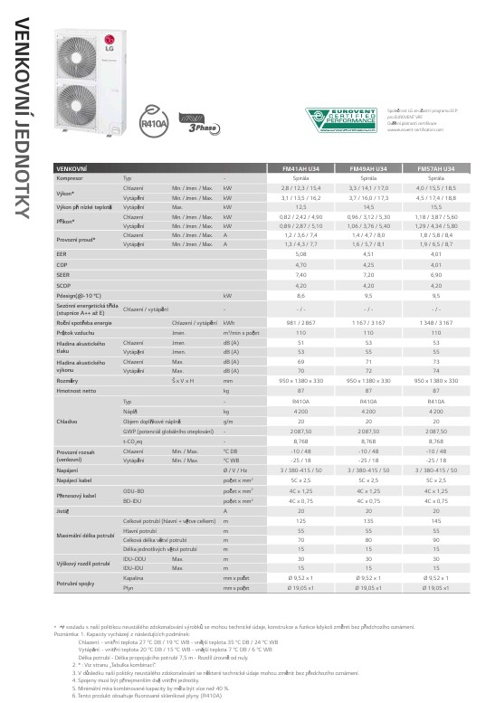 LG MULTI FDX FM49AH.U34 VÝKON CH/V 14,1/16,0 kW 3F