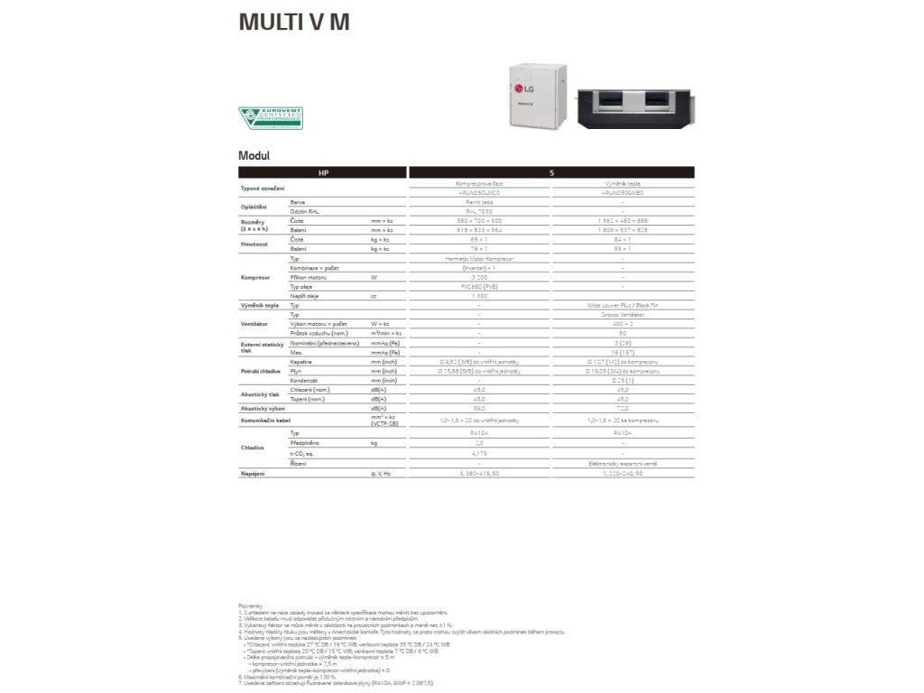 LG MULTI V M kompresorová jednotka ARUN050LMC0 VÝKON CH/V 14,0/16,0 kW 3f
