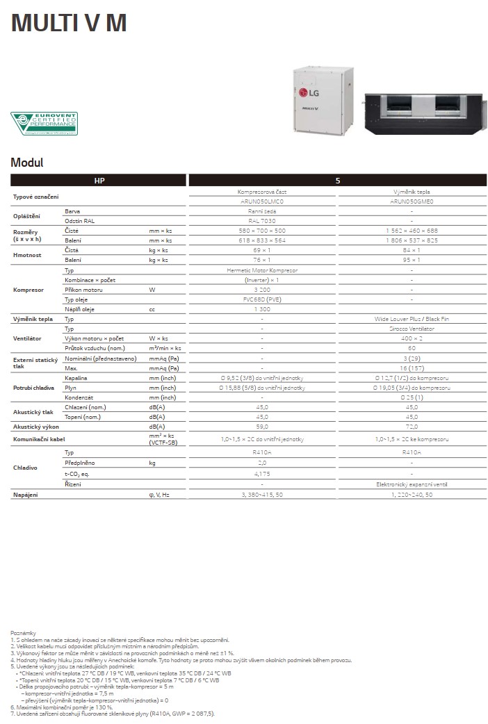 LG MULTI V M výmenník tepla, vonkajšia jednotka ARUN050GME0 VÝKON CH/V 14,0/16,0 kW 3f