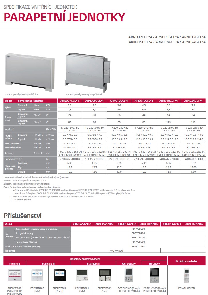 LG MULTI V PARAPETNÁ NEOPLÁŠTENÁ - vnútorná jednotka ARNU24GCFU4 VÝKON CH/V 7,1/8,0 kW