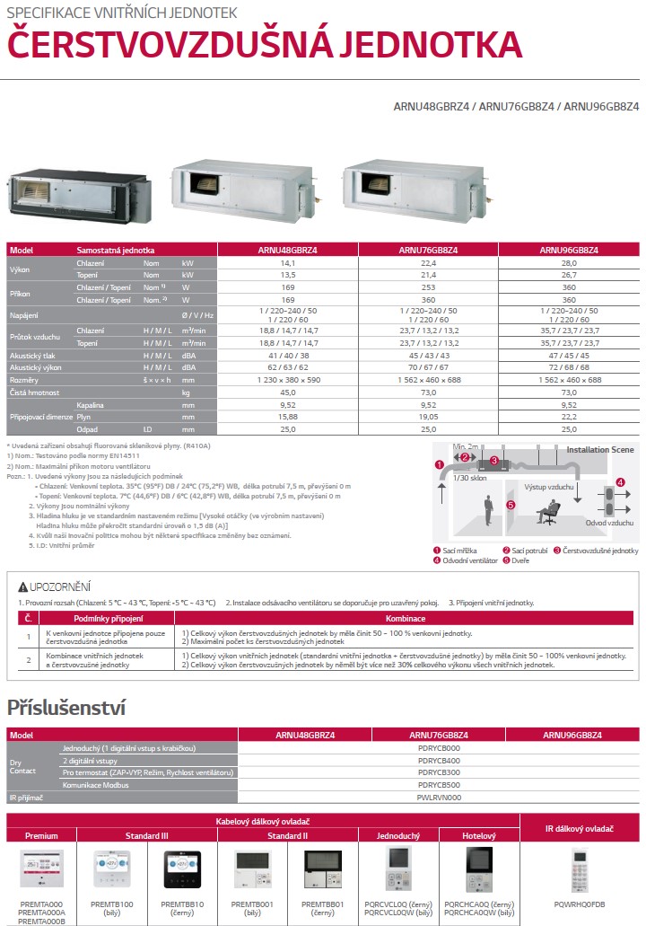 LG MULTI V PODSTROPNÁ - vnútorná jednotka nasávania čerstvého vzduchu ARNU96GB8Z4 VÝKON CH/V 28,0/26,7 kW