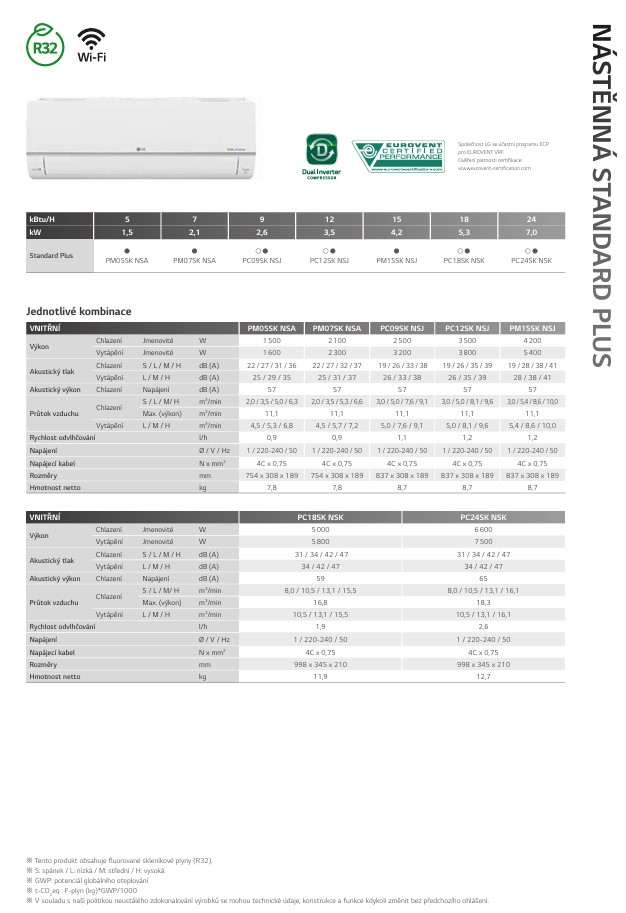 LG STANDARD PLUS MULTISPLIT PC09SC.NSJT VÝKON CH/V 2,5/3,3 KW