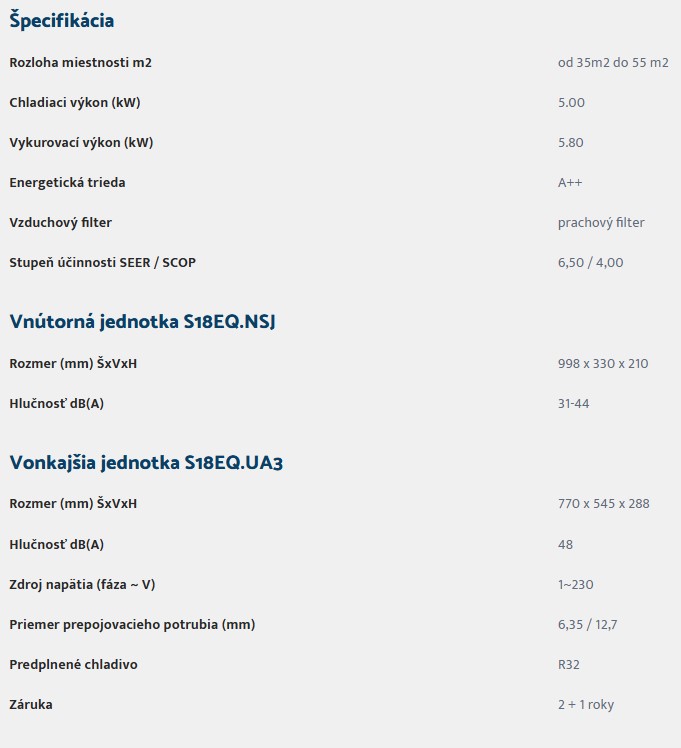 LG STANDARD S18EC VÝKON CH/V 5,0/5,8 KW