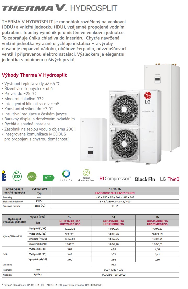 LG THERMA V HYDROSPLIT s IWT HU143MRB.U30 (R32, 14kW, 3f/6kW dohrev, so zabud. TUV 200l)