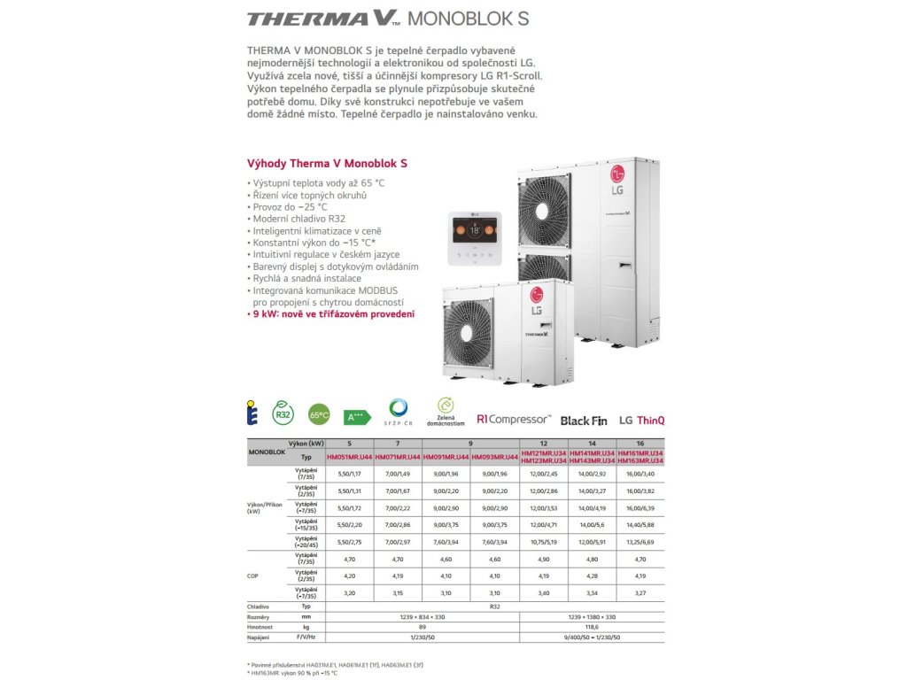 LG THERMA V MONOBLOK S HM143MR.U34 (R32, 14kW, 3F/6kW dohrev)