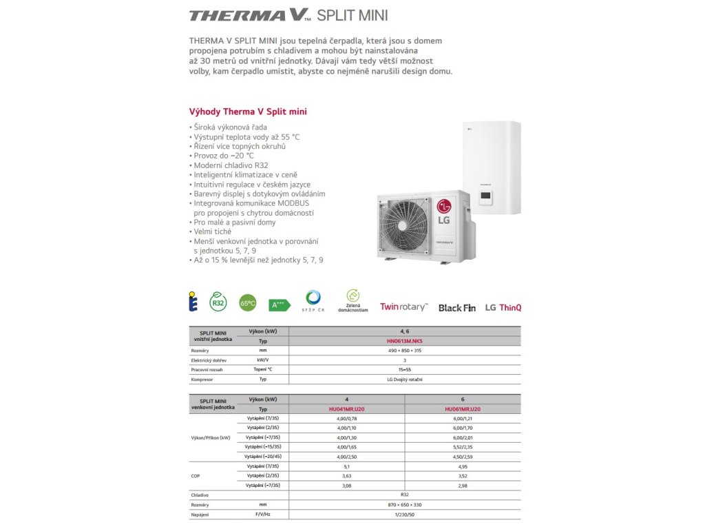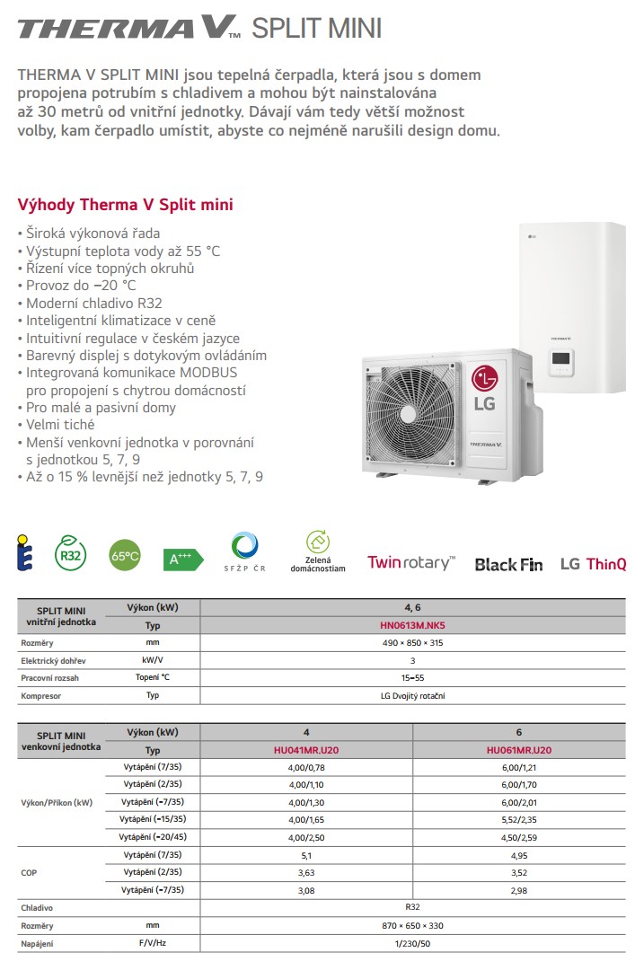 LG THERMA V SPLIT HU041MR.U20 (R32, 4kW, 1f/3kW dohrev)