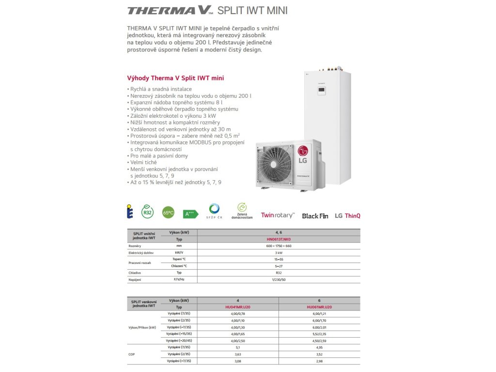 LG THERMA V SPLIT IWT HU061MR.U20 (R32, 6kW, 1f/3kW dohrev so zabud. TUV 200l)