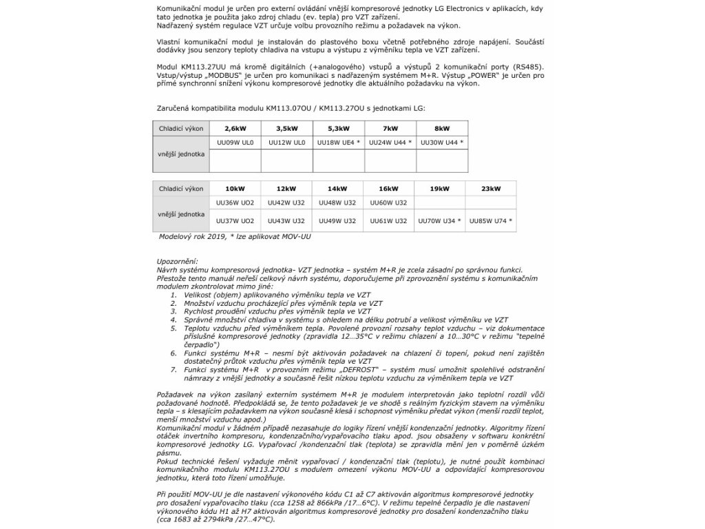 LG VZT riadiaci modul UU KM113.27UU