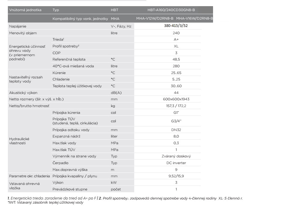 M-Thermal split s TÚV 240L MHA-V16W/D2RN8-B2 (R32, 16 kW, 3f, čierna)