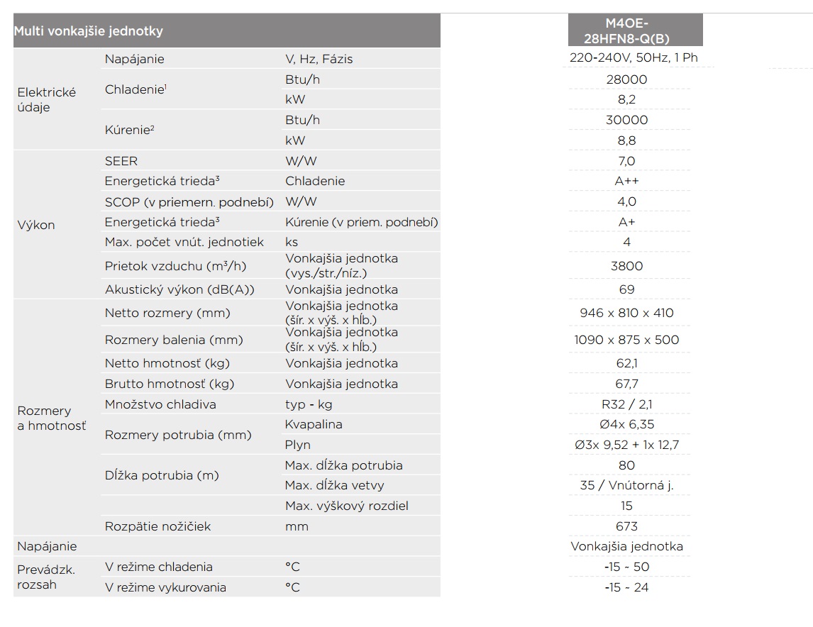M4OE-28HFN8-Q(B) multi vonkajšia jednotka (R32, 8,1 kW, max 4 vnút. jed.)