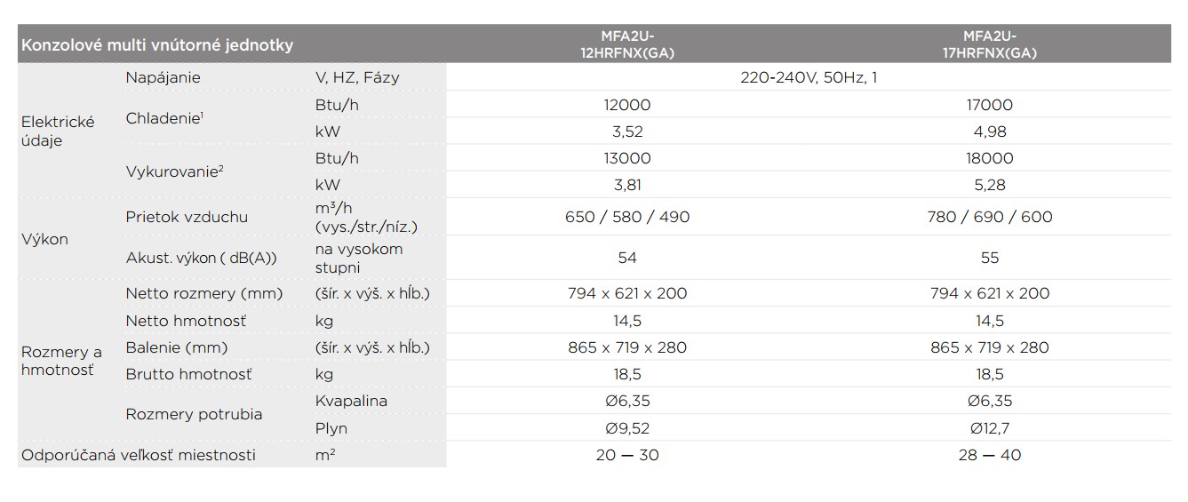 MFA2U-12HRFNX(GA) multi konzolová vnút. jed. (3,5 kW)