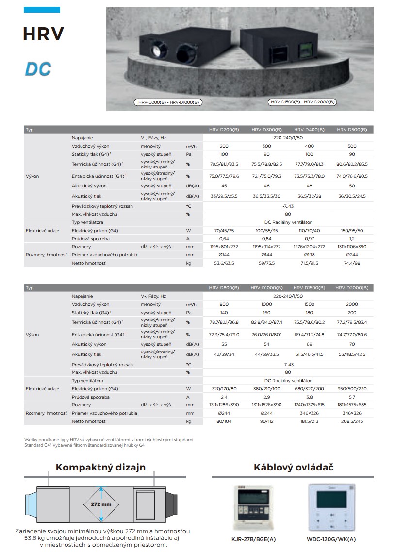 Rekuperátor DC Inverter HRV-D2000(B) (so štandardným ovládačom)