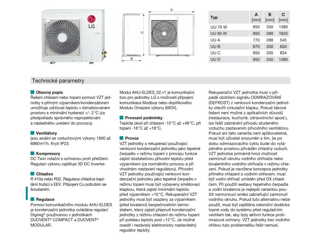 LG Univerzálna kondenzačná jednotka UU70W.U34 VÝKON CH/V 19,0/22,4 KW 3F
